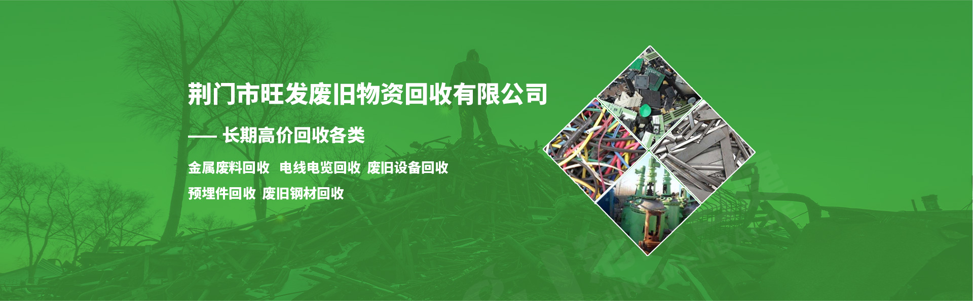 荊門市旺發(fā)廢舊物資回收有限公司,長期高價上門收購廢舊鋼材、有色金屬和廢舊設(shè)備及物資。價格合理、誠實守信、安全方便,愿有廢舊物資需要處理的企業(yè)單位及個人聯(lián)系洽談回收事宜。